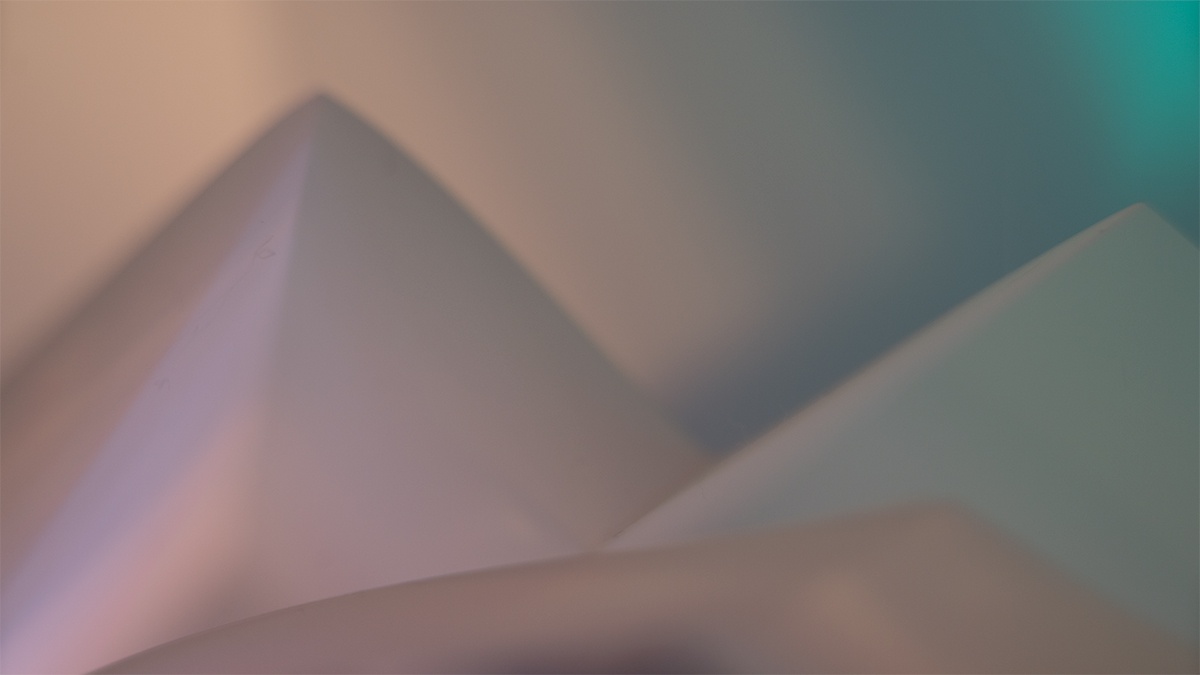 This is an image of a sculpture that was created from paper, plastic and light with colored gels. This was then photographed and is NOT manipulated by Photoshop. The concentration here was more about color fields and less about volume. Also the muted tones evoke a warmer more somber place for the viewer to inhabit. This is a Diasec Print (print fused to plexi) and is 36" x 62" This is printed in Estonia and shipped from there.