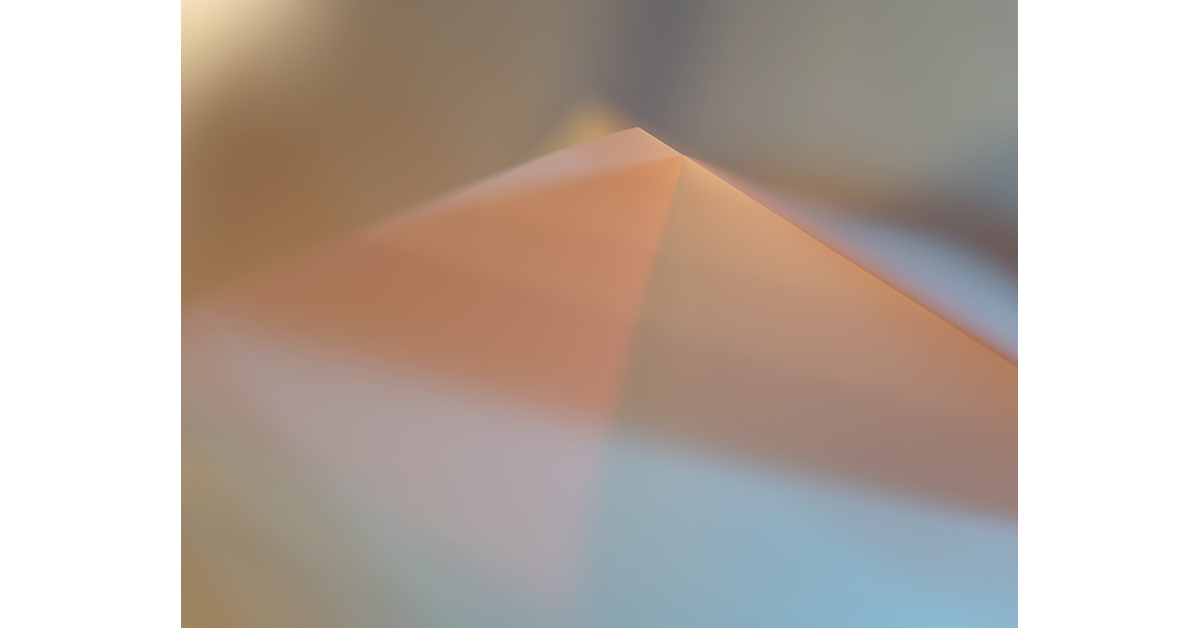 This is an image of a sculpture that was created from paper, plastic and light with colored gels. This was then photographed and is NOT manipulated by Photoshop. The concentration here was more about color fields and less about volume. Also the muted tones evoke a warmer more somber place for the viewer to inhabit. This is a Diasec Print (print fused to plexi) and is 60" x 60" This is printed in Estonia and shipped from there.