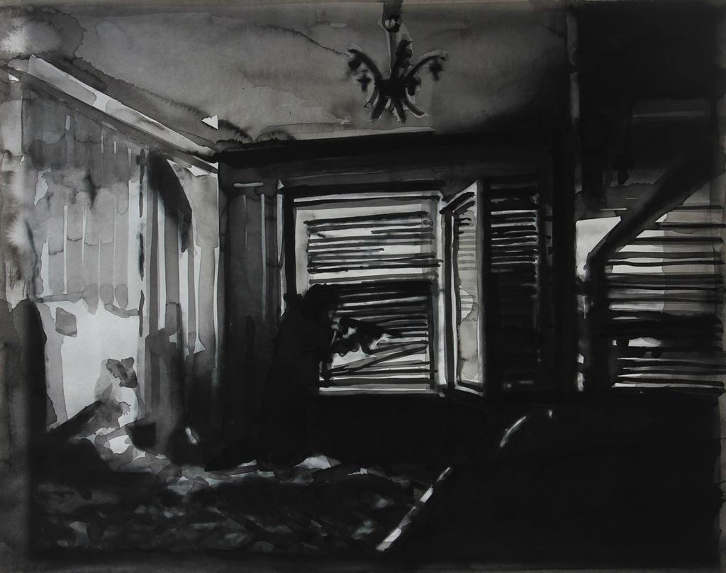 charcoal and ink on paper