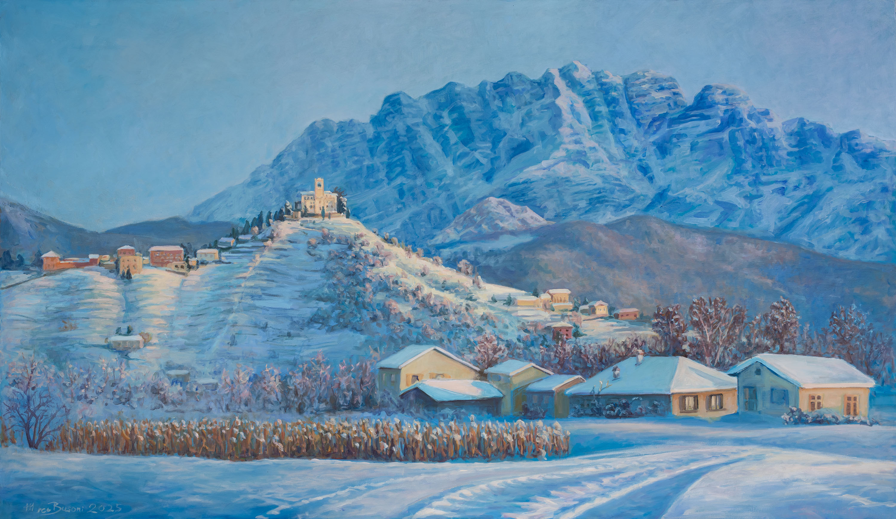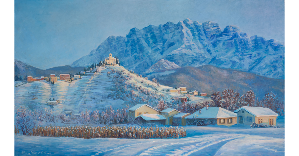Questo dipinto si basa su una serie di foto che ho scattato nel 2007; purtroppo non abbiamo avuto una vera nevicata negli ultimi 10 anni, da qui il titolo "C'era una volta...".