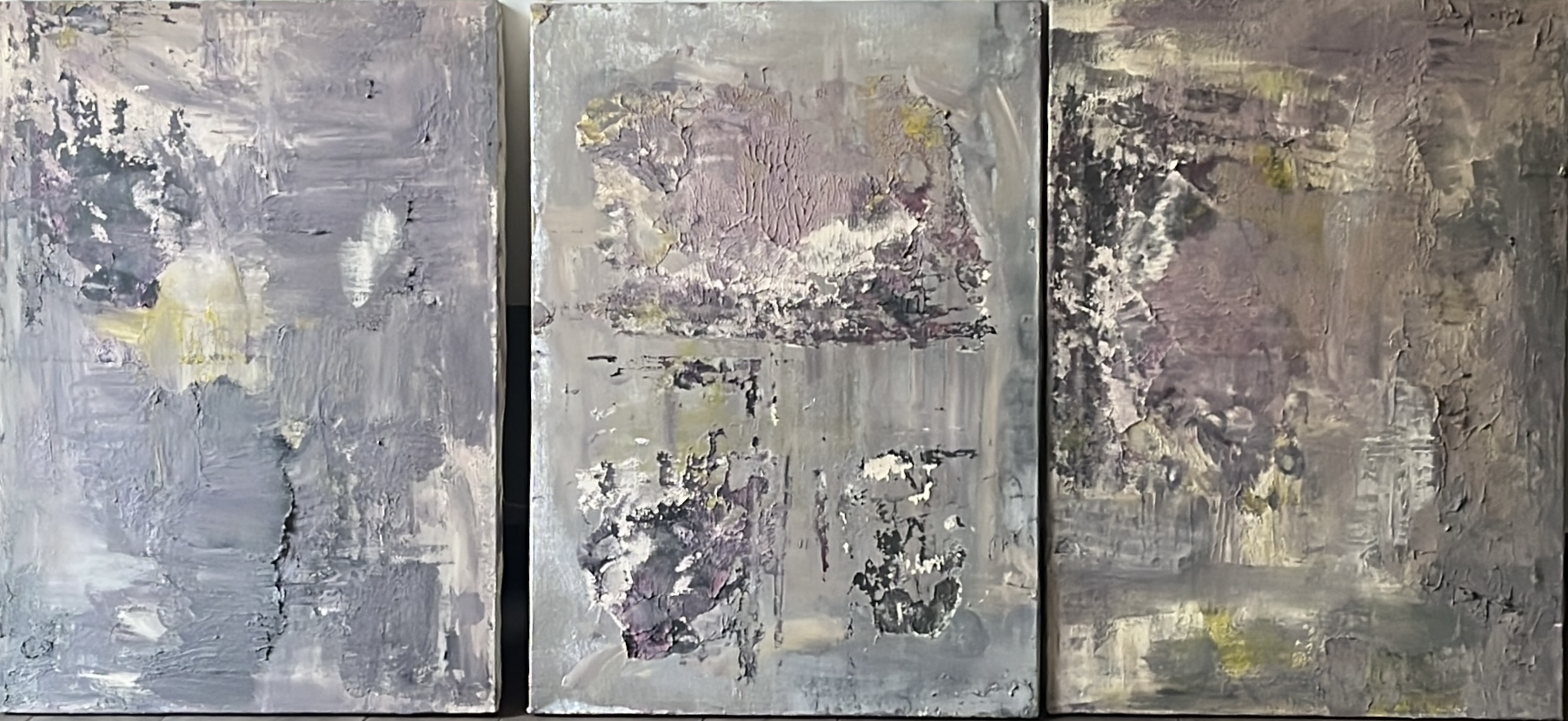 I Muri - Trittico dove attraverso un viaggio onirico rappresentato dai colori, lo spettatore si trova catapultato all’interno di una città utopica, dove il movimento ed il tempo risiedono nelle scrostature della tela come i muri di una città in decadenza.