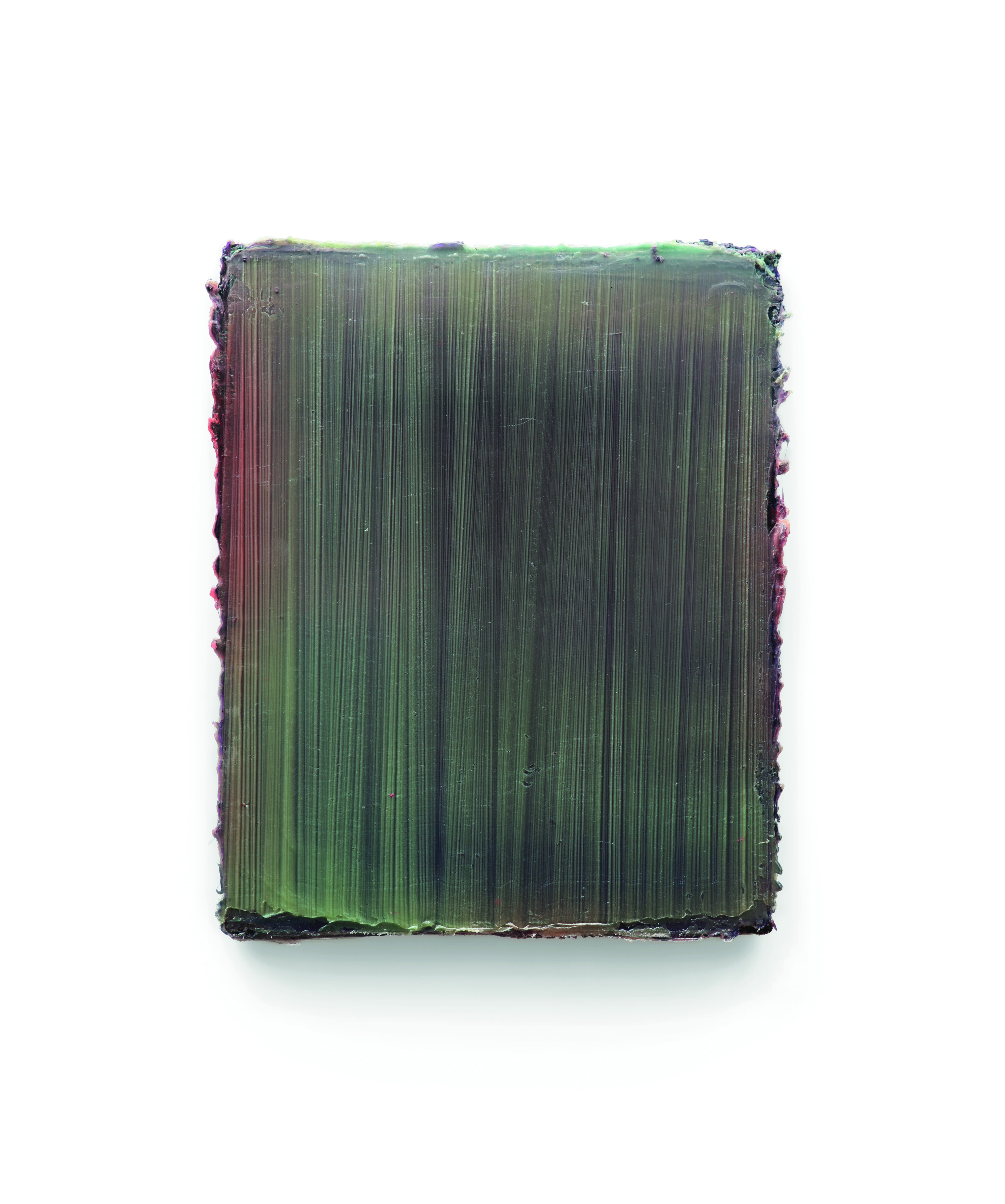L'artista berlinese Lev Khesin realizza dipinti simili a sculture che mettono in risalto la complessa interazione tra colore e materialità. Sfidando l'influenza dei sistemi linguistici, Khesin esplora il potenziale cognitivo di un'arte libera da concetti imposti su oggetti e fenomeni. In un processo che richiede molto tempo e utilizzando diversi strumenti, stende strati su strati di silicone traslucido tinto in una varietà di tonalità, modellando superfici lisce e strutture solcate. Sperimentazione e scoperta sono sempre parte del metodo artistico di Khesin. Ogni strato di silicone ricopre la superficie del pannello come una pellicola. Il numero di strati su un dipinto varia da una dozzina a un centinaio. Khesin mescola il silicone trasparente con diversi pigmenti e ogni strato può quindi differire dal successivo in termini di colore e grado di trasparenza. Dipingendo in silicone arricchito con pigmenti, Khesin fa appello in egual misura ai sensi della vista e del tatto.
