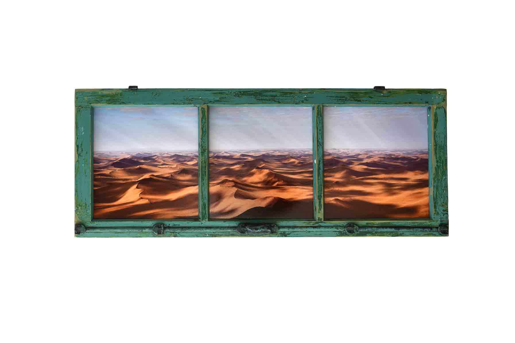 La foto scattata a Giugno 2024, rappresenta le dune del deserto del Namib, in Namibia, riprese durante un sorvolo. Stampata a settembre 2025 in Fine Art Giclée su carta baritata Prestige 340 gsm è stata montata dentro un anta di una finestra proveniente da Creta.