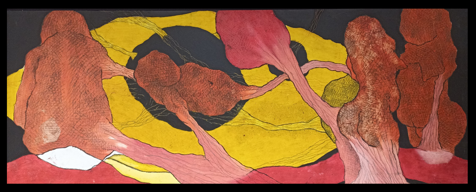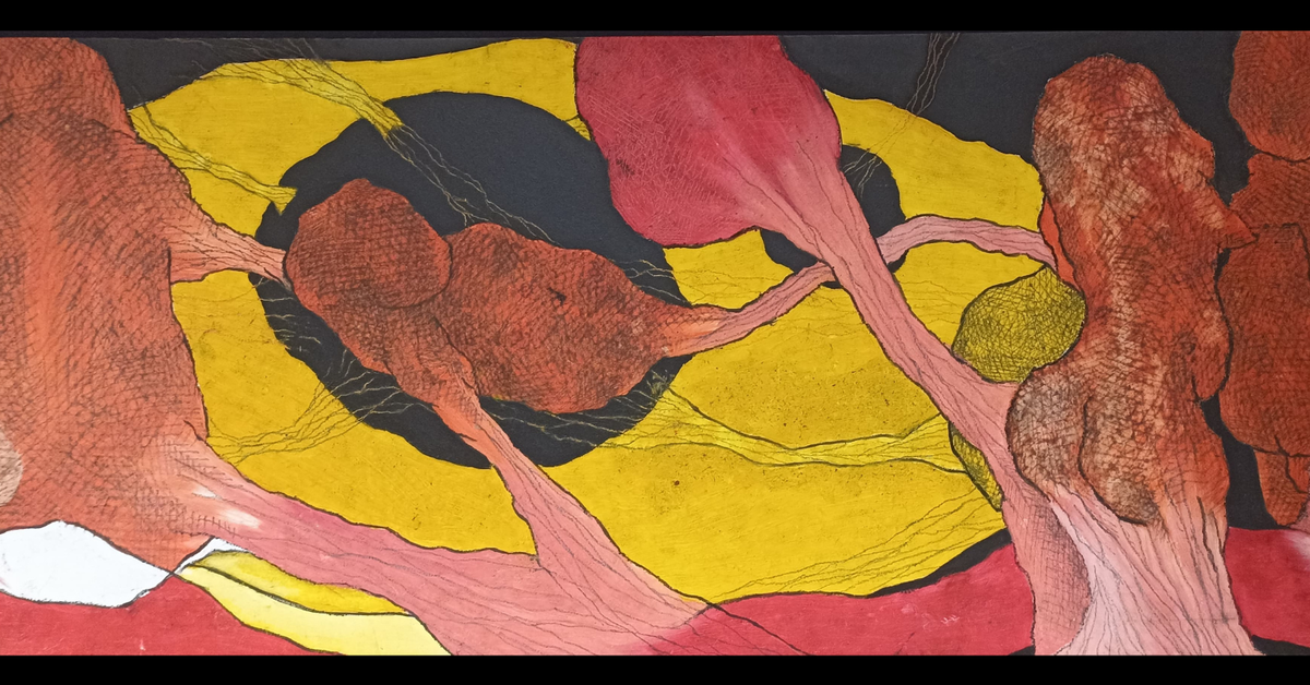 "Micro e Macro" mette in dialogo due scale di percezione della realtà, fondendo la dimensione cellulare e quella cosmica in un'unica trama organica. Le forme si espandono e si intrecciano come tessuti viventi o galassie lontane, rivelando l'invisibile architettura che lega l'infinitamente piccolo e l'infinitamente grande. Attraverso una materia vibrante e un uso intenso dei colori, l’opera invita a riflettere sulla continuità tra le forze che animano la vita e quelle che strutturano l’universo. "Micro e Macro" è un viaggio sensoriale che rompe i confini tra l'interno e l'esterno, tra ciò che vediamo e ciò che intuiamo.