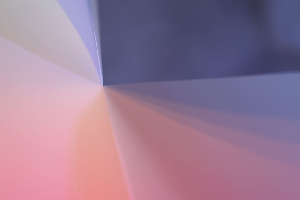 This is an image of a sculpture that was created from paper, plastic and light with colored gels. This was then photographed and is NOT manipulated by Photoshop. The concentration here was more about color fields and less about volume. Also the muted tones evoke a warmer more somber place for the viewer to inhabit. This is a Diasec Print (print fused to plexi) and is 36" x 55" This is printed in Estonia and shipped from there.
