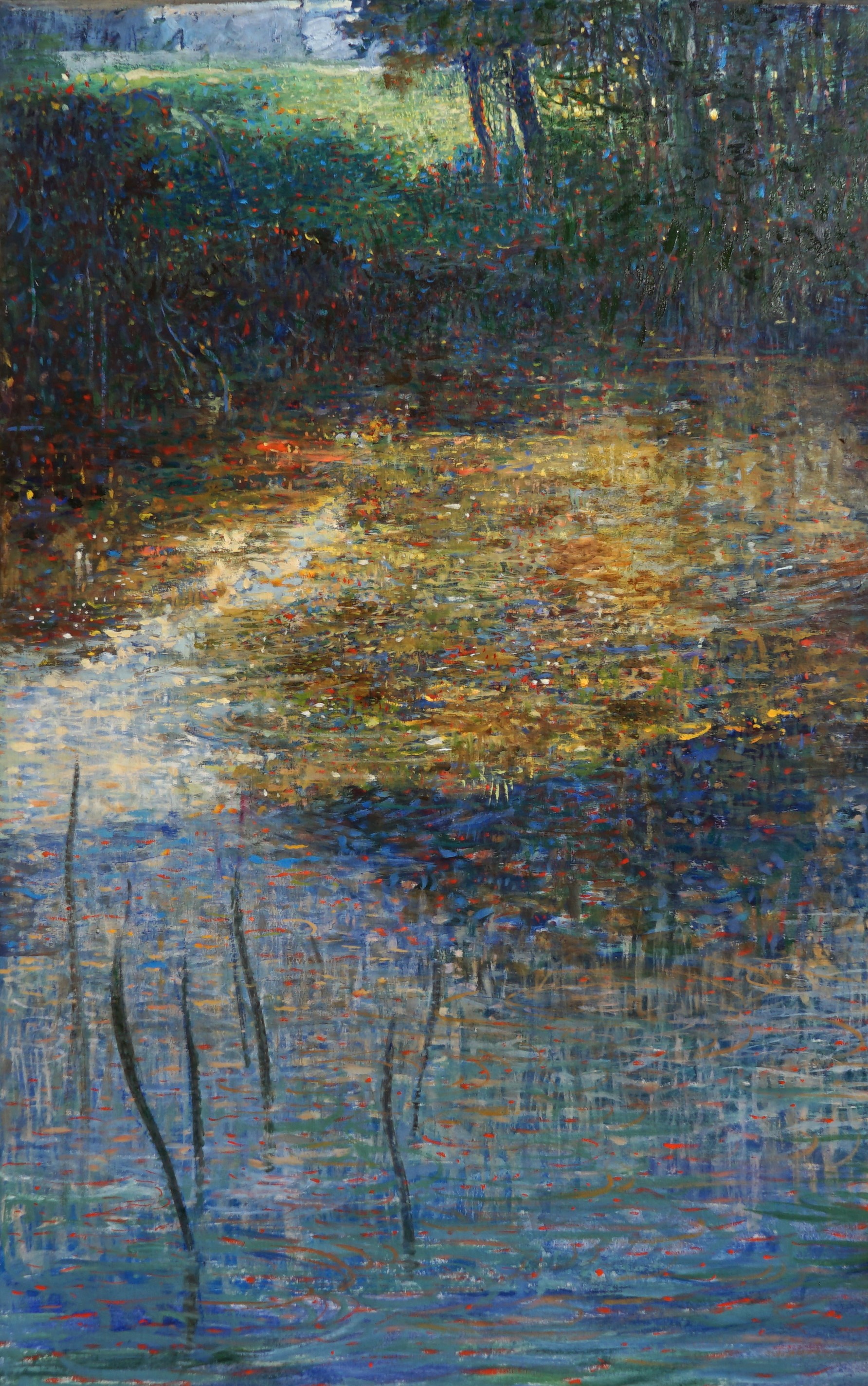 Anche in questo dipinto, ho utilizzato la tecnica divisionista, ovvero la resa di un'area di colore attraverso, la suddivisione in piccole pennellate di colore differente. La fusione delle pennellate avverrà sulla retina dell'osservatore, mantenendo così una grande luminosità del dipinto.
