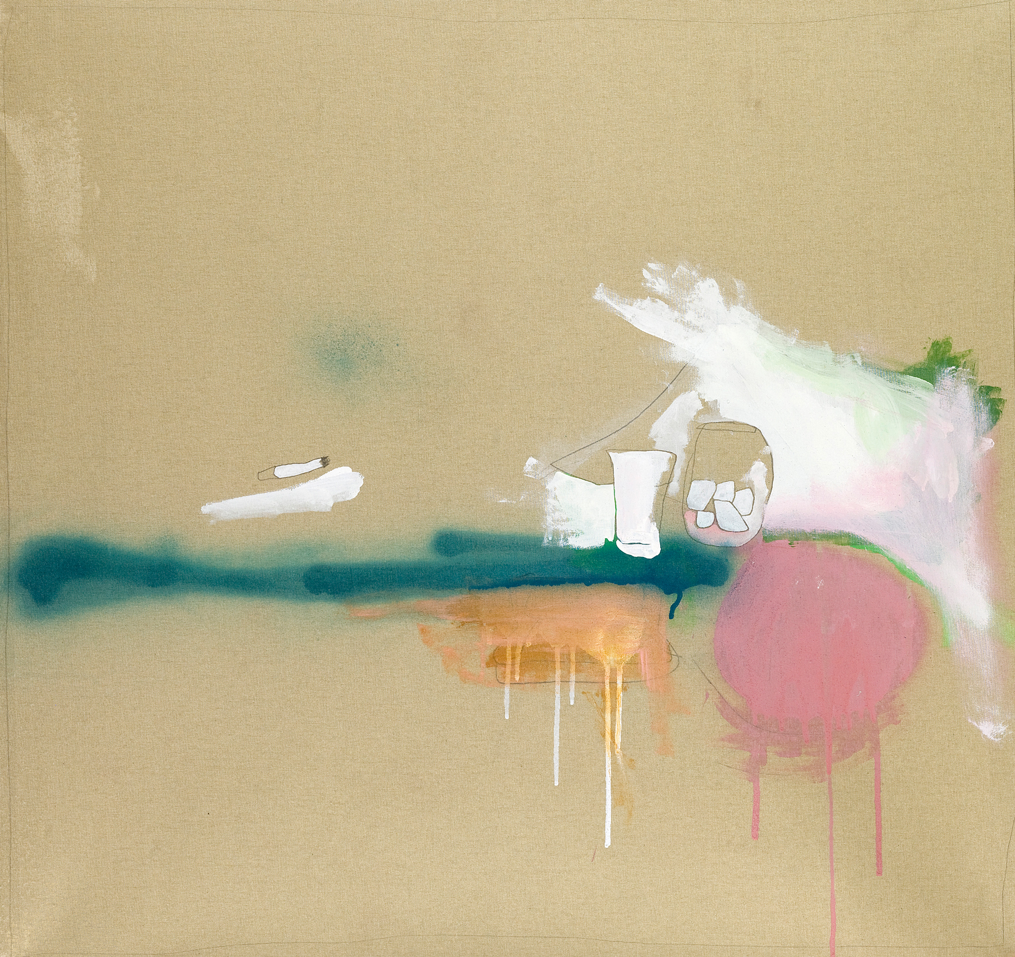 Acrilico, matita, bomboletta spray e smalto ad acqua su tela, 2017