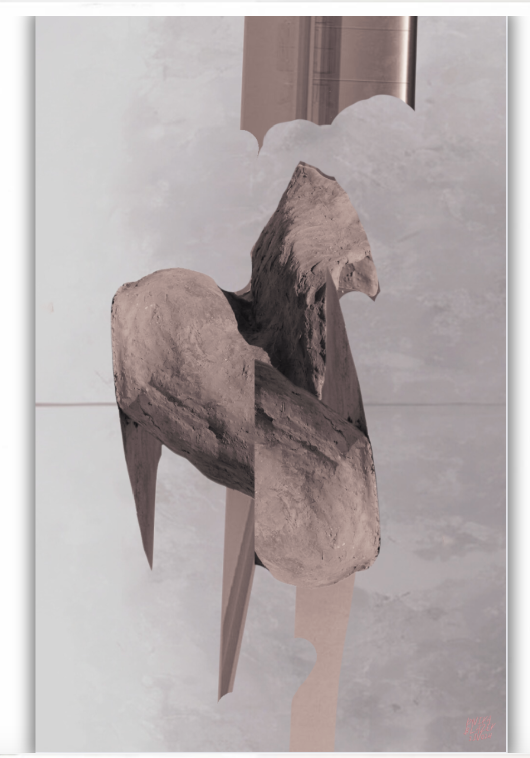 By transforming sculptural forms into a visual embodiment of existence, this work explores the fragile architecture of being—its fleeting presence, consciousness, and the elusive nature of happiness. Like a Trojan horse carried into the depths of awareness, the image questions the stability of identity and reality. The architectural zones encoded in the gene of being become deceptive shelters: structured yet unstable, inviting yet subversive. Within them, the form carries its own dissolution—a vehicle of transformation masked as permanence. It is a meditation on existence as a construct constantly at the edge of collapse and rebirth.