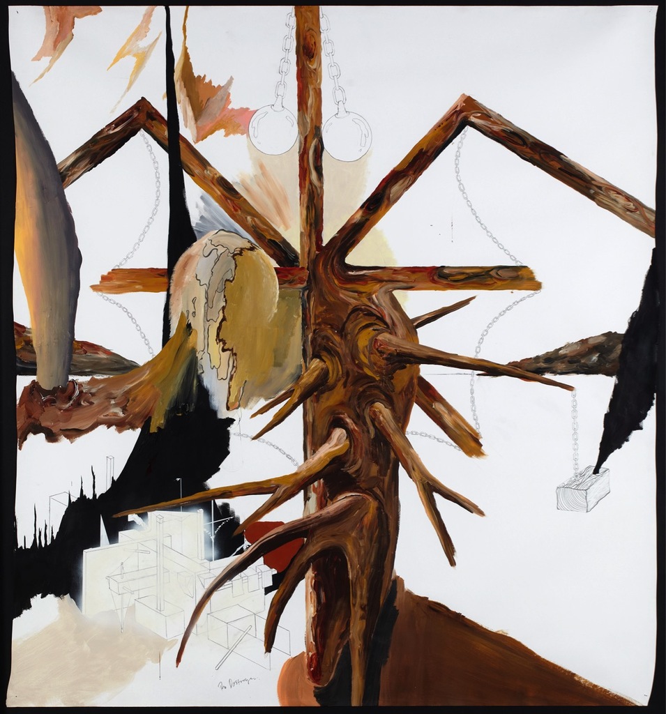 Winning artwork Painting section Combat Prize 2012. Bo Christian Larsson (b. 1976 in Kristinehamn, Sweden) lives and works in Älvkarhed, Sweden, and Berlin, Germany. Larsson’s wide-ranging practice incorporates a variety of media, including video, drawing, sculpture, painting, installation, and performance, which he uses interchangeably and often simultaneously. Interested in symbols, social conventions, and rituals, and how we rely on them to make sense of the world around us, Larsson frequently distorts found and everyday objects – from suitcases and feathers to books and clocks – to create alternative, often ambiguous, associations that challenge our human desire for order, identification, and understanding.
