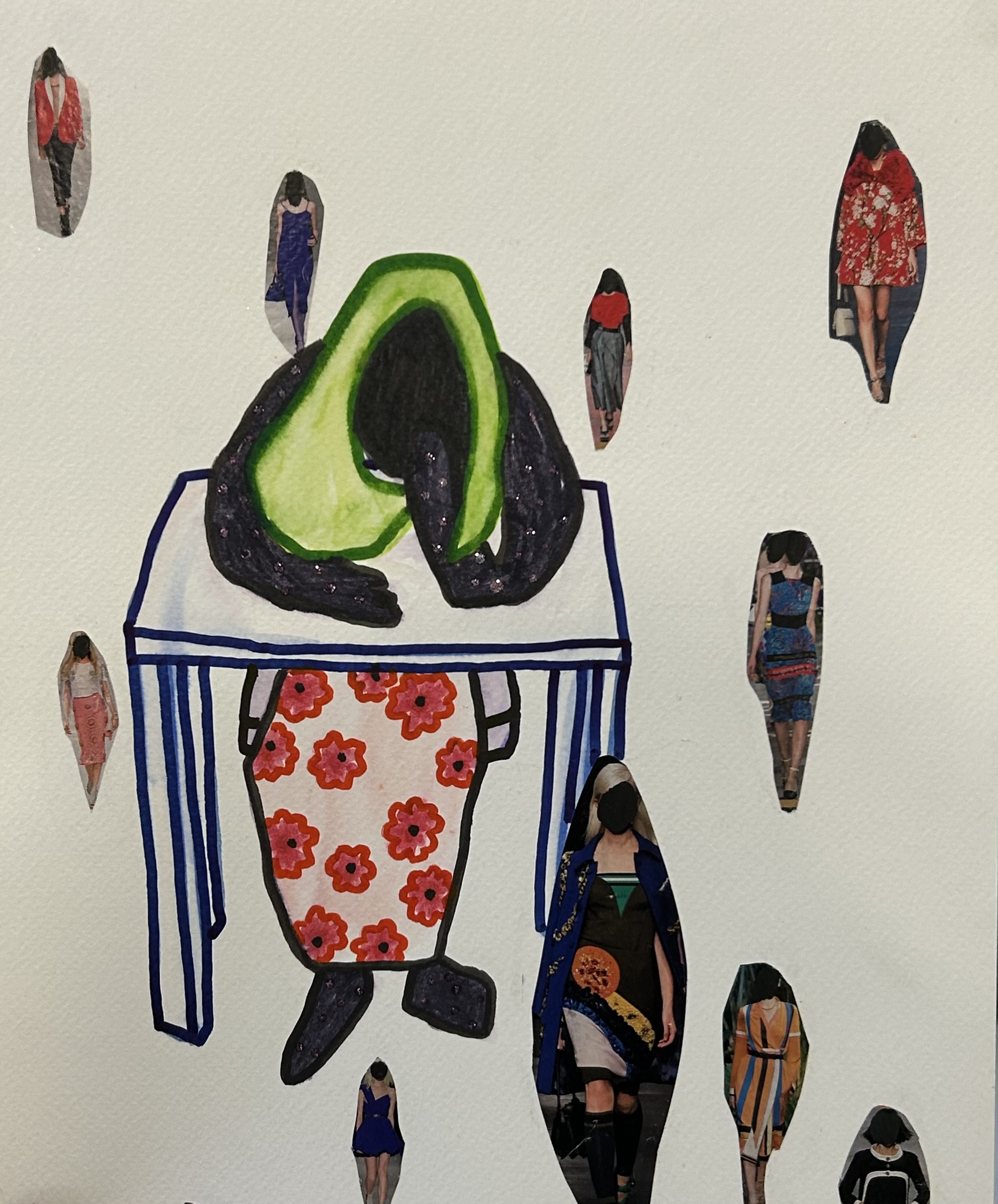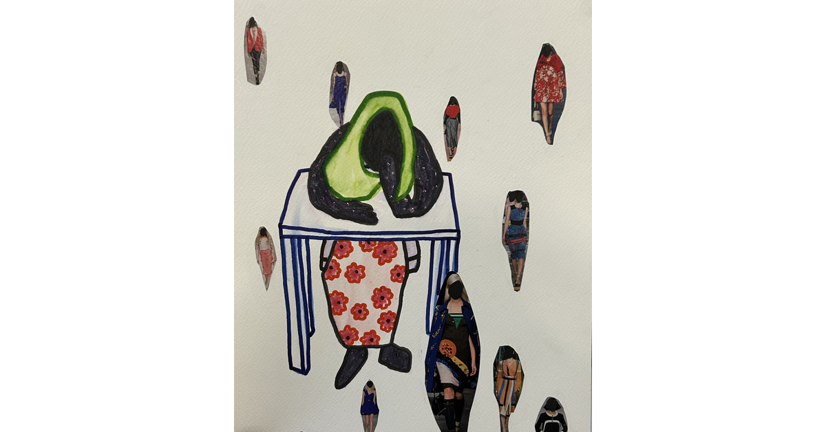 Mixed media with collage on watercolour paper, 2024